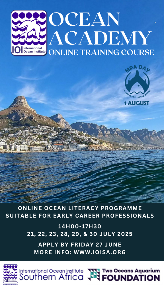 The International Ocean Institute – Southern Africa (IOI-SA) is happy to announce that the annual 4-week Ocean Governance Training Programme will take place from 4th-29th November 2024. Save the date, and don’t miss out on the opportunity to join the 2024 cohort. For more information click here. To apply please complete this online form by 28th June. https://forms.gle/qa9bJSqFqt7QpwW36 No late applications will be considered.